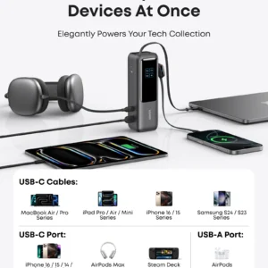 En términos de diseño, el hub multipuerto Anker mantiene una estructura compacta y elegante que facilita su transporte. Su tamaño portátil permite llevarlo fácilmente en mochilas, bolsos o maletines sin ocupar demasiado espacio. Esto lo convierte en un accesorio ideal para quienes trabajan de manera remota, viajan constantemente o necesitan una estación de trabajo móvil.